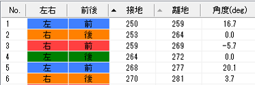 4本の足それぞれについて、接地・離地のタイミングを算出し、リスト化します。