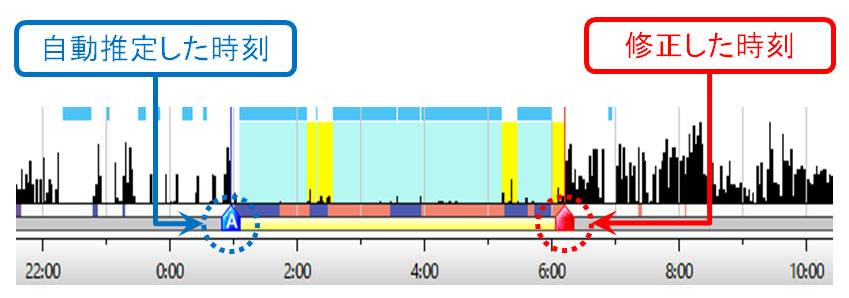 弊社独自のアルゴリズムで就床時刻と離床時刻を自動推定します。推定に誤りがあった場合は手動で修正することも可能です。