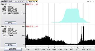 活動量から睡眠/覚醒を自動判定し、グラフ出力できます。