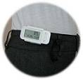 腰に活動量計を装着するだけで活動量を計測できます。
