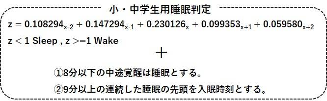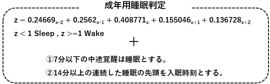 下記の判定式を用いて、睡眠/覚醒を判別します。