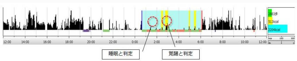 活動量から、睡眠/覚醒を自動判定して表示します。 |