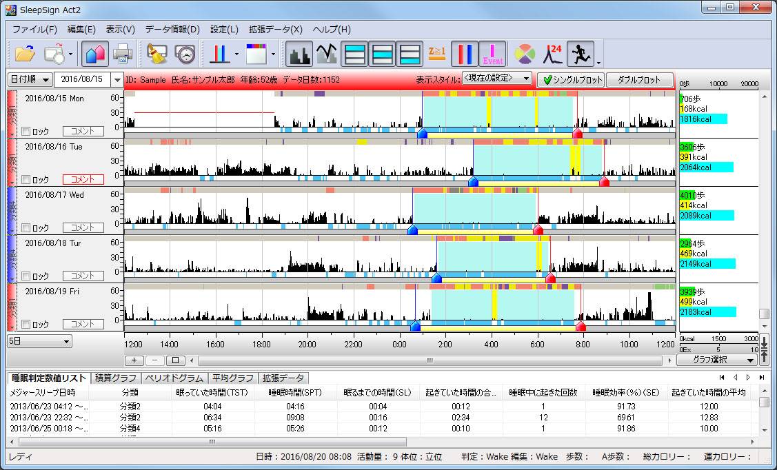 活動量計とは高機能な歩数計です。加速度センサーが搭載されており、歩数や消費カロリーのほかに、体の動きに応じた“活動量”を計測しています。SleepSignActは、この活動量から独自アルゴリズムにより、睡眠/覚醒を判別するソフトです。