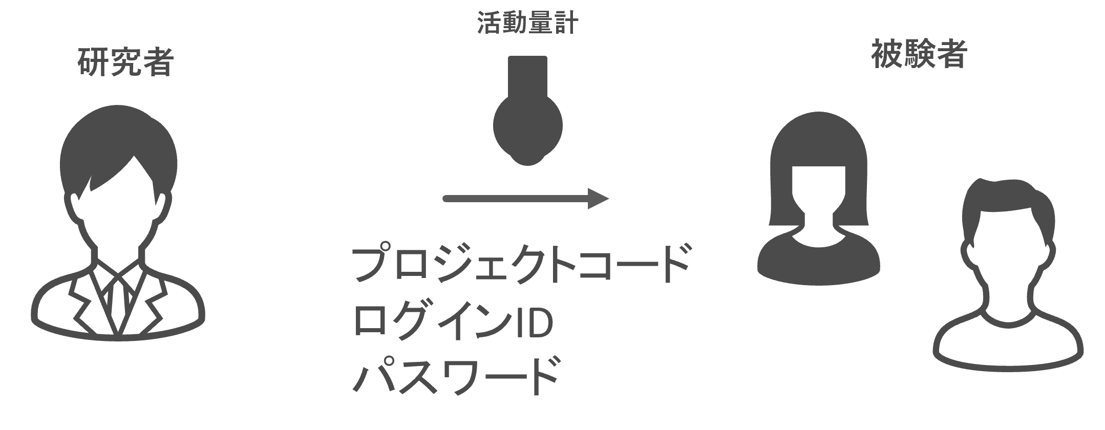 設定が完了したら、被験者に活動量計およびSleepSign®-Cloud活動量計 読込アプリ用プロジェクトコード・ログインID・パスワードを配布します。