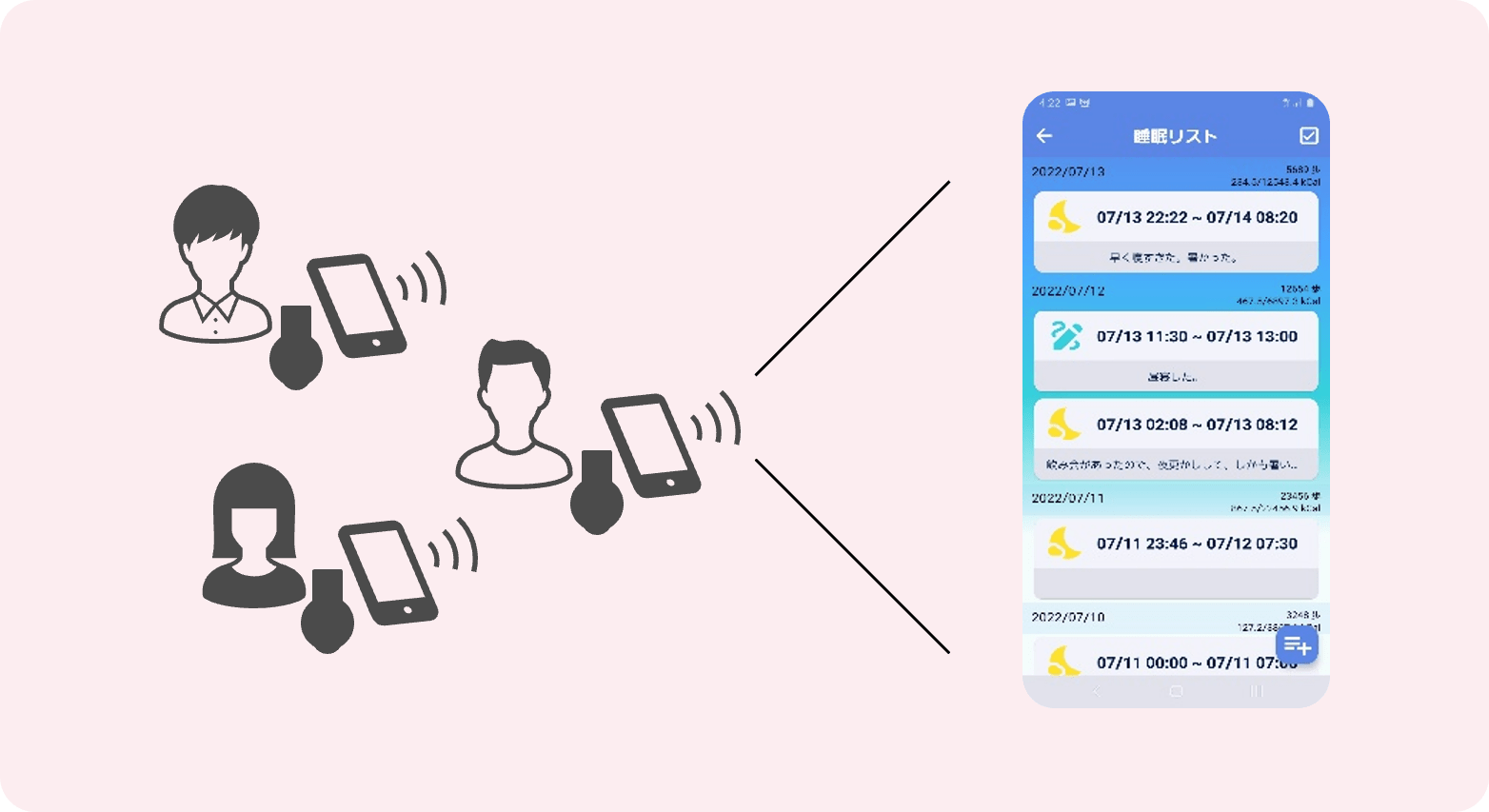 モバイルアプリ | ・スマートフォンで活動量計の読み取り ・就床・離床時刻の確認と修正 |
