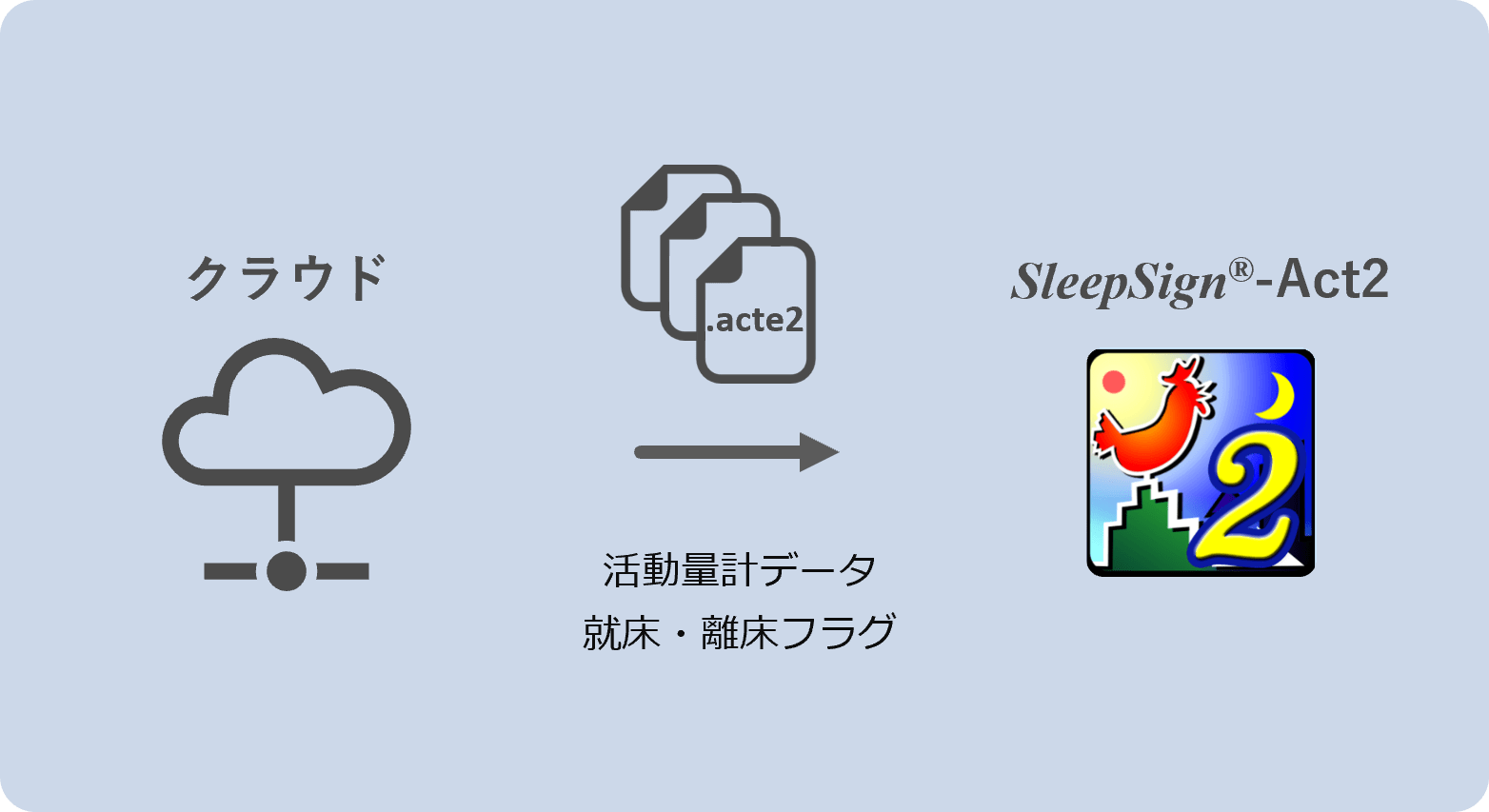 ・ブラウザから.acte2ファイルをダウンロード ・必要に応じて、返却された活動量計をSleepSign®-Actで読みこみ、解析 |