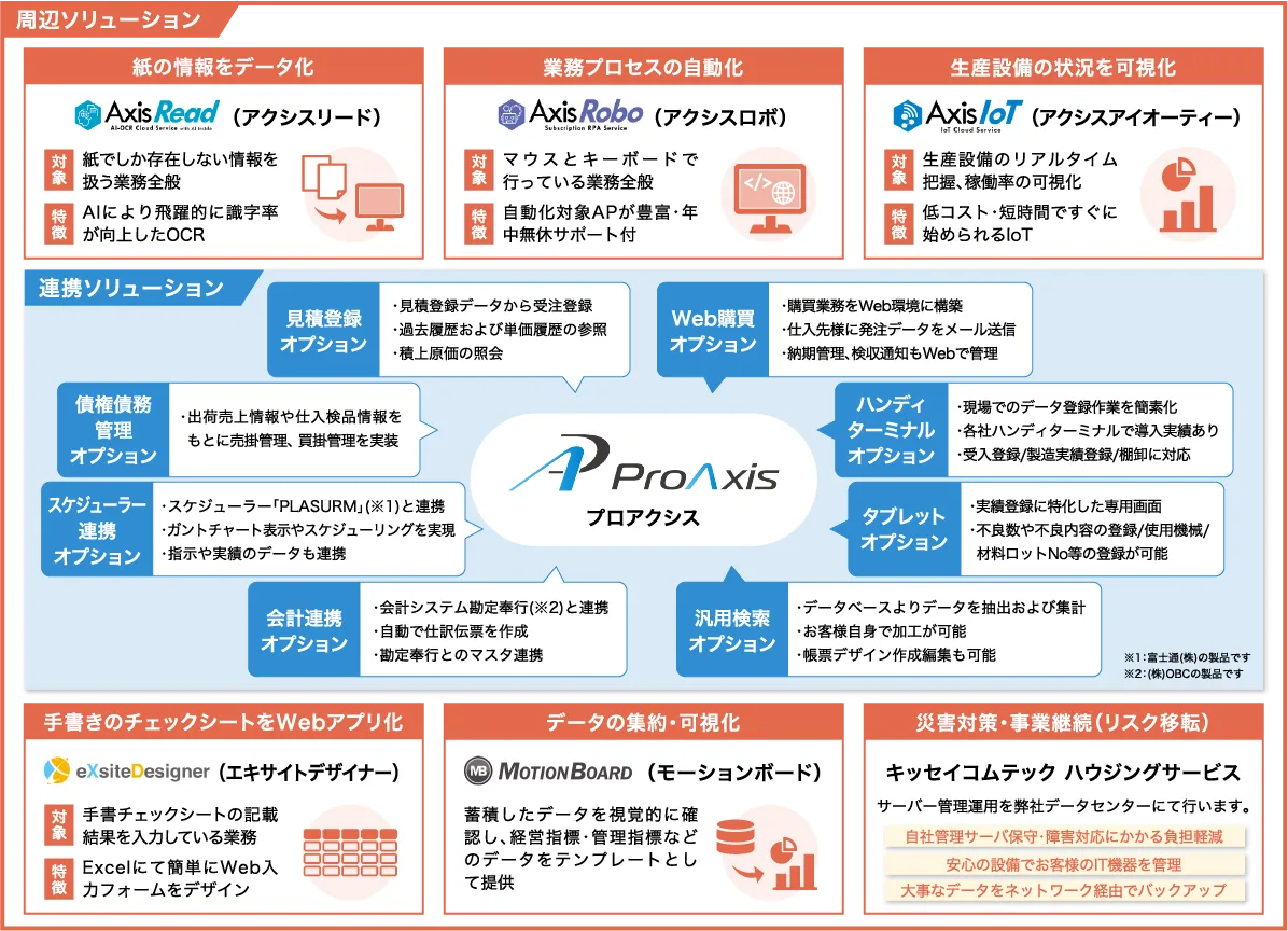 - ProAxisのデータベースに連携し、必要なデータを簡単に出力することが可能です。