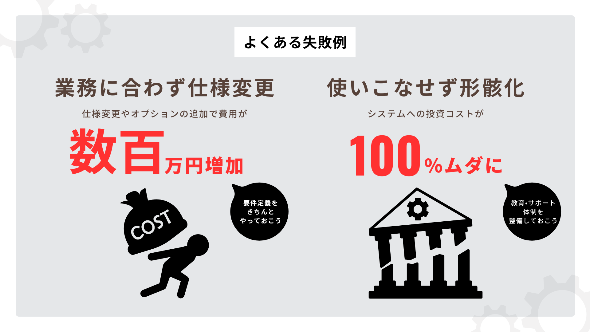 ここでは、よくある導入の失敗例と、その解決策をご紹介いたします。