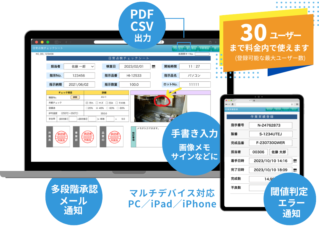 現場の声を取り入れながら開発した「製造現場に特化した」電子帳票システムです。