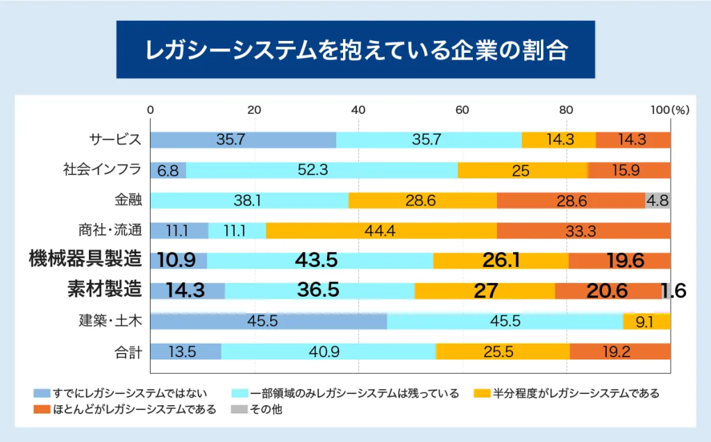 レガシーシステムを抱えている製造業の企業は少なくないため、設備維持費が高騰しているとされます。